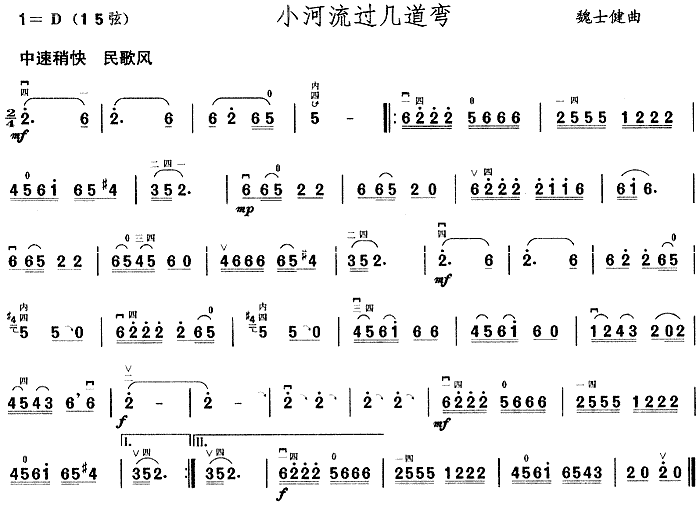 二胡曲谱 小河流过几道弯下载简谱下载五线谱下载曲谱网曲谱大全中国曲谱网