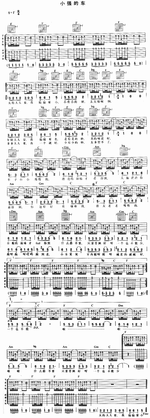 吉他曲谱 小强的车下载简谱下载五线谱下载曲谱网曲谱大全中国曲谱网