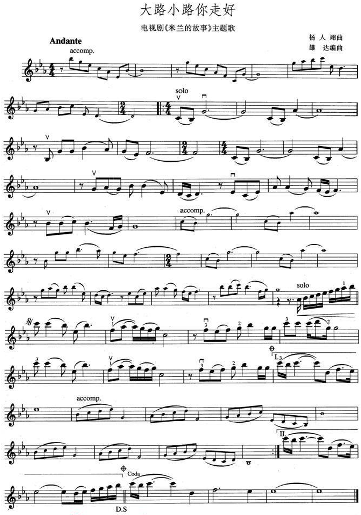 您现在的位置:伴奏音乐>>曲谱下载>>小提琴曲谱 大路小路你走好
