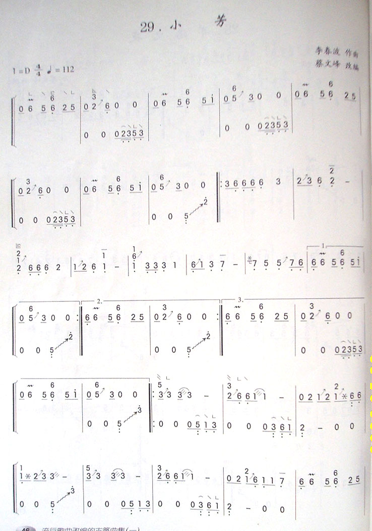 古筝曲谱 小芳1下载简谱下载五线谱下载曲谱网曲谱大全中国曲谱网